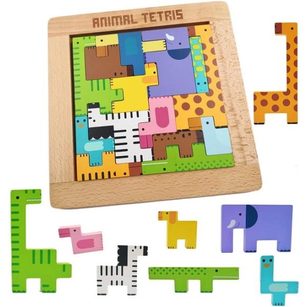 アニマル テトリス 動物 木製 積み木 知育玩具 動物パズルセット おもちゃ