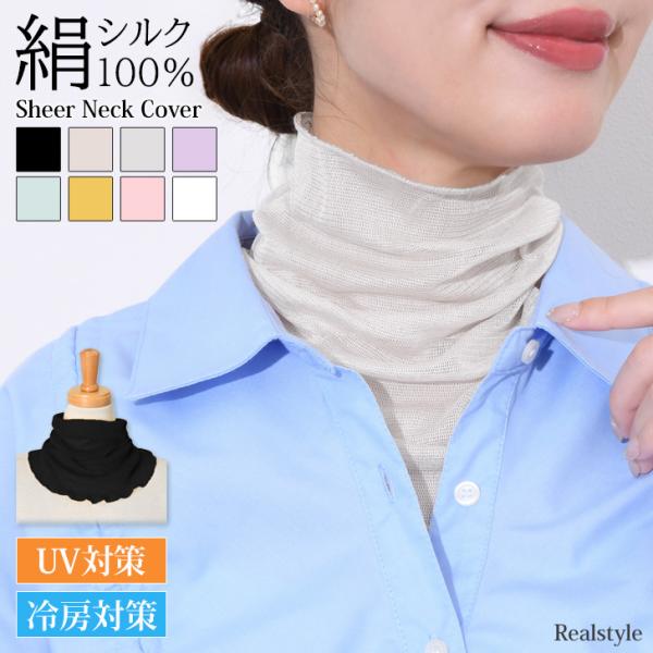 ネックカバー 夏用 春 UVケア シルク100% おしゃれ 日焼け防止 首のシワ隠し タートルネック 紫外線対策 シアー ネックウォーマー 首だけ 薄手 ハイネック 絹