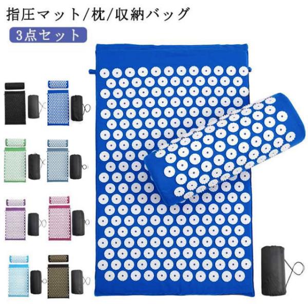 指圧マット 収納バッグ付き ヨガシャクティマットリラクゼーション 枕 筋肉トレー 痛みリラックス 室内 トレーニング ヨガマット 鍼治療 3点セット