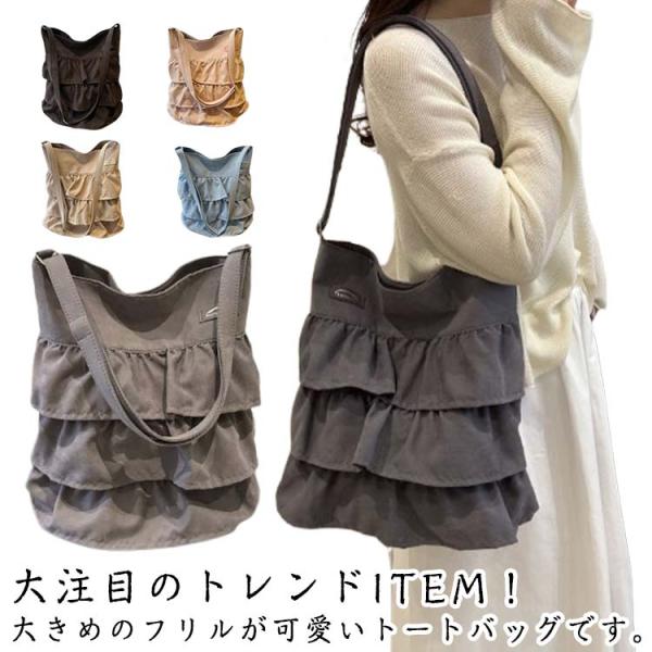 フリル ティアードバッグ フリルバッグ トート レディースバッグ フリル ワンショルダー A4 肩掛け バッグ トートバッグ フリル エコバッグ 折り