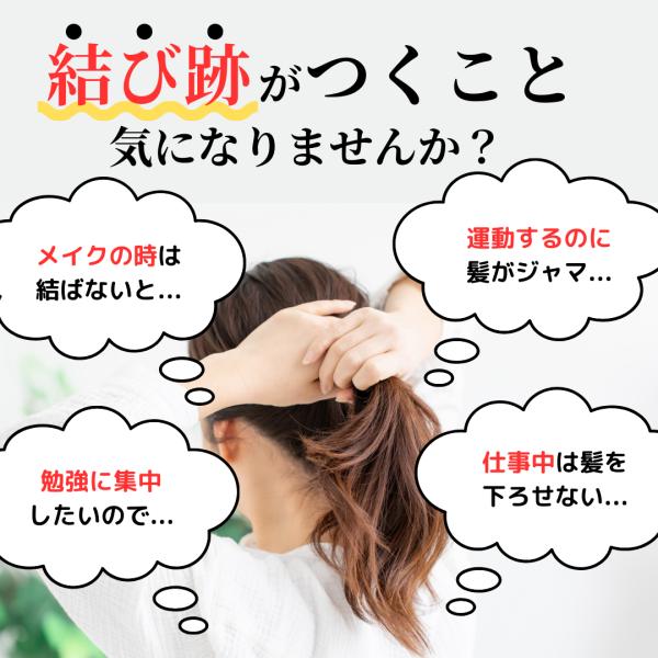シルク100%のヘアゴムは、髪に優しい素材で作られており、長時間使用しても跡がつきにくいのが特徴です。