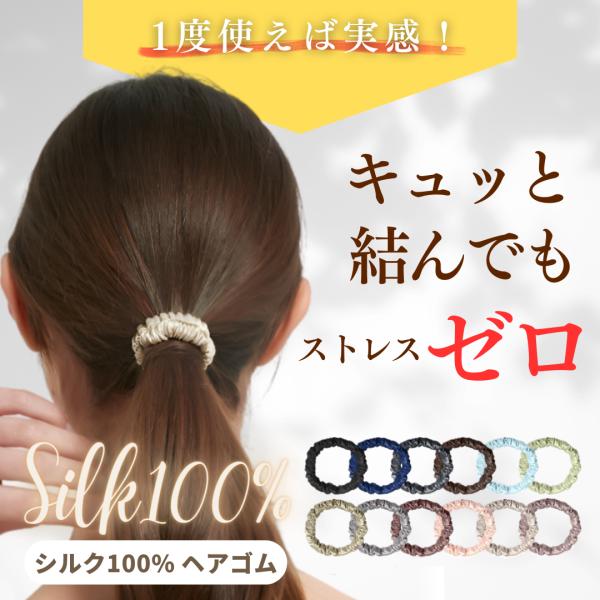 ヘアゴム シルク ヘアアクセサリー おしゃれ シルク100% シルクヘアゴム シュシュ ヘアアクセ きれいめ 髪ゴム 跡がつかないゴム ヘアゴム 20代 30代 40代 50代