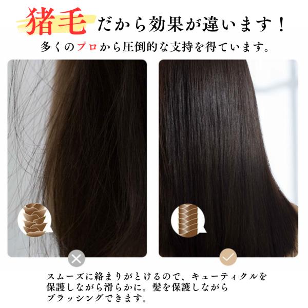 猪毛特有の硬めの毛質が、髪の絡まりをスムーズに解消し、頭皮を優しくマッサージ。毎日のブラッシングがサロン級のケアに変わります。