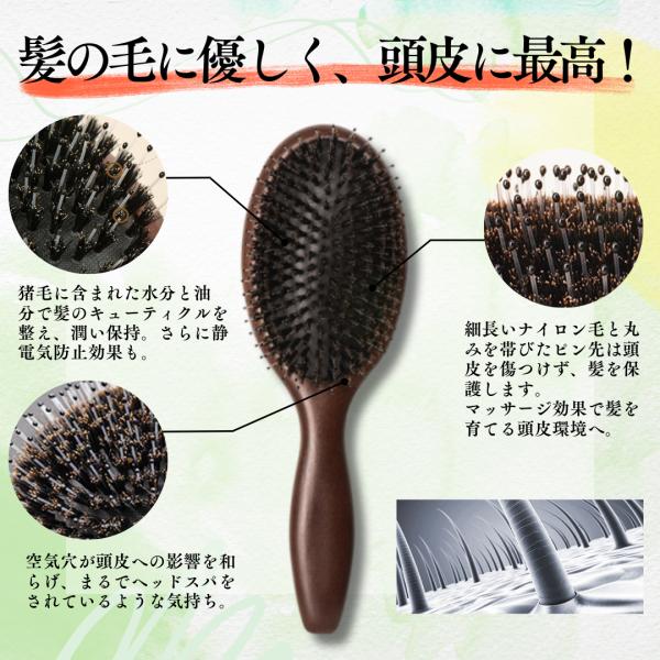 ヘアブラシ 猪毛 髪サラサラ 艶 人気 ツヤ くし 頭皮マッサージ ヘアケア ヘッドブラシ パドルブラシ 髪質改善 美髪 静電気 防止 コンパクト ロング ショート
