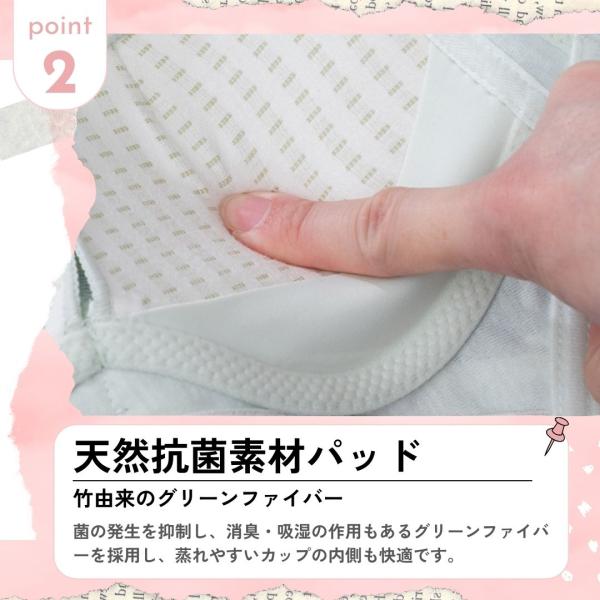 竹由来のグリーンファイバーは、菌の発生を抑制し、消臭・吸湿作用もある為、ムレやすいパッド内も清潔に保ちます。