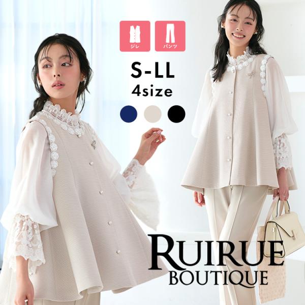 レディース ママスーツ セットアップ セレモニー 入園 入学 卒業 卒園式 七五三 母親 服装 ミセス ジレ ブラウス パンツ 50代 40代 30代 上品 洗える ストレッチ