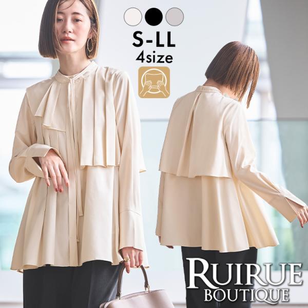レディース 長袖 ボウタイブラウス トップス バンドカラー オフィスカジュアル 通勤 春 秋 50代 40代 30代 ミセス きれいめ 大人可愛い 上品 洗える ストレッチ