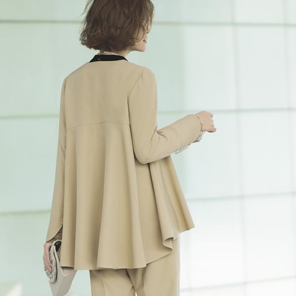 ノーカラーフレアペプラムパンツスーツ2点セット SU1088