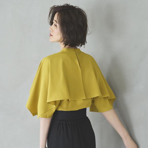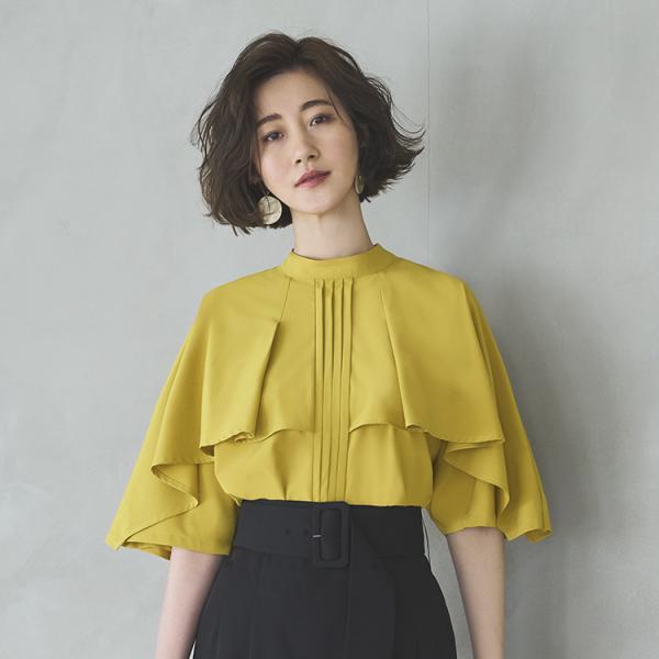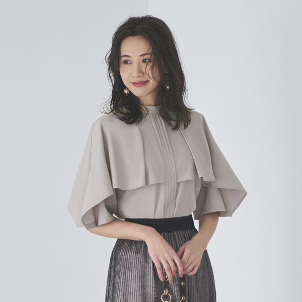 ピンタックケープスタンドカラーブラウス T1119