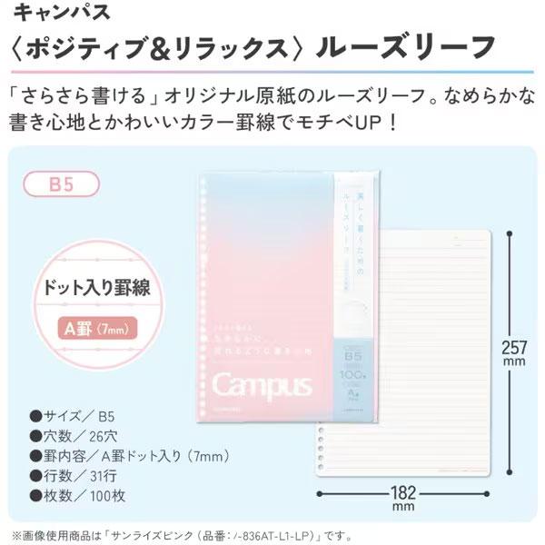 【ポジティブ&リラックス】 Campus ルーズリーフ B5 (A罫/B罫) 100枚 [全4種] コクヨ 10-ノ-836*T-L1-** 【2冊までネコポス可】[M便 1/2]