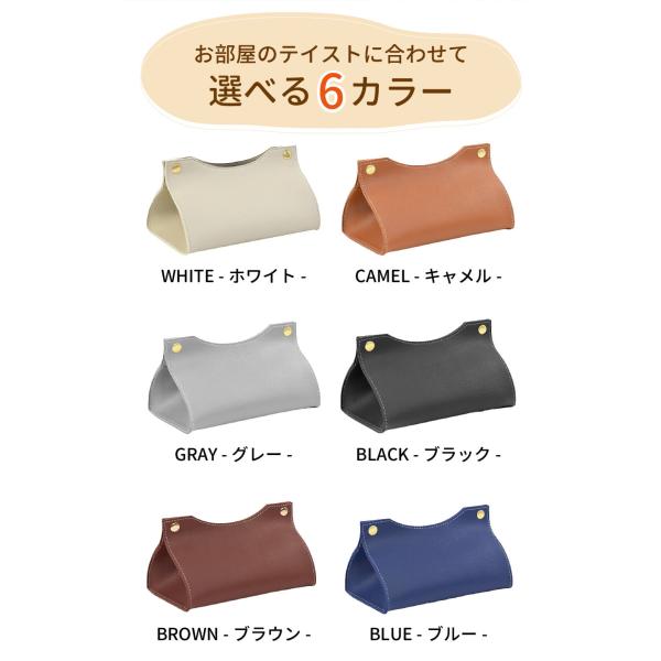ホワイト、キャメル、グレー、ブラック、ブラウン、ブルー