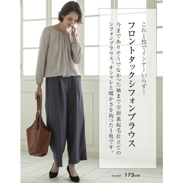 シャツ ブラウス 秋冬 フロントタック裏起毛シフォンブラウス レディース S M L LL 3L 長袖 入学式 卒業式≪ゆうメール便配送30・代引不可≫ 爆買