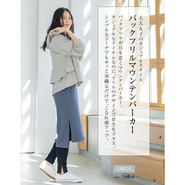 バックフリルが目を惹くマウンテンパーカー。