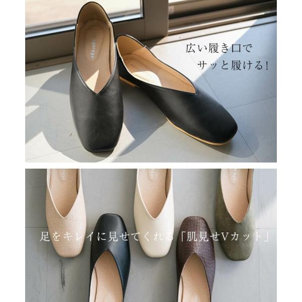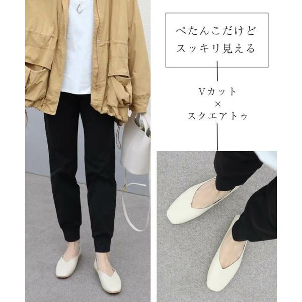 さっと履けておしゃれに決まる!Vカットスクエアトゥフラットシューズ。