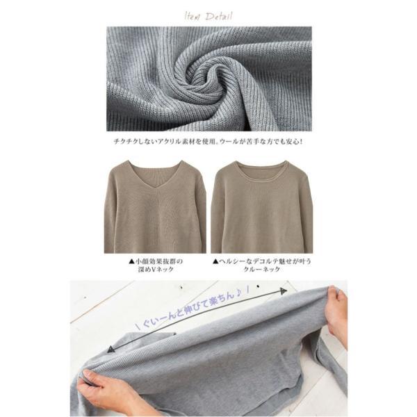 ニット 春 トップス レディース Vネック クルーネック スリット プルオーバー 長袖 無地 きれいめ 大きいサイズ 大人 M L≪ゆうメール便配送30・代引不可≫ 爆買