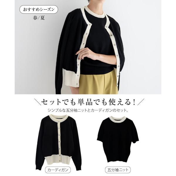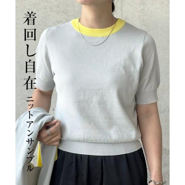 シンプルな半袖ニットと長袖カーデのセットで、オンオフ問わず活躍間違いなし!