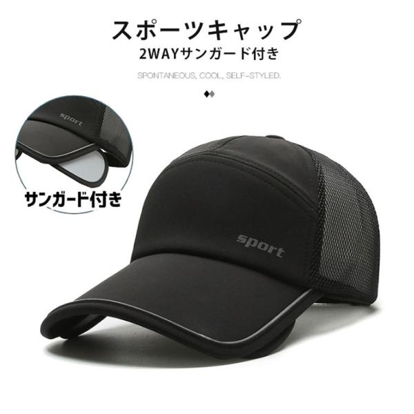 2WAY SPORTロゴ サンガード付き メッシュ ランニング 日よけ ランニングキャップ深め スポーツ 釣り 脱げにくい 飛ばない 帽子 速乾 通気性 メンズ