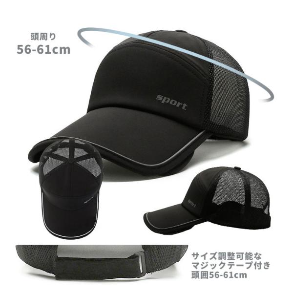 大きめサイズ ランニングキャップ シンプル UVカット スポーツ メッシュ ジョギング 日よけ 防水 反射材 帽子 レディース メンズ