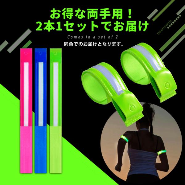 【2本セット】ランニングライト 点滅ライト 充電式 両手用 LED 2ライン反射材 アームバンド 夜間 ランニング ウォーキング