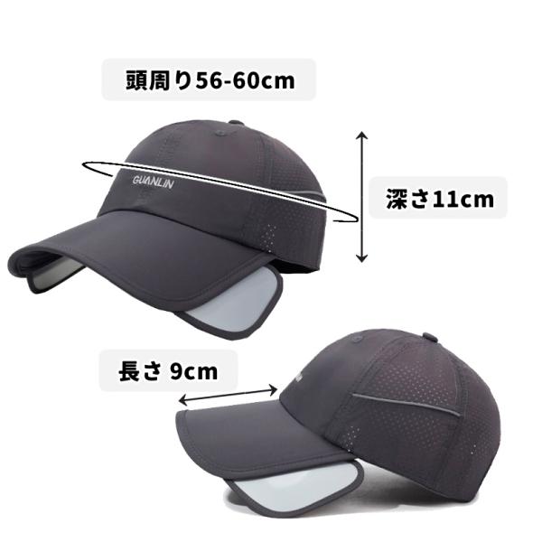 2WAY GUANLINロゴ サンガード付き メッシュ ランニング 日よけ ランニングキャップ スポーツ 釣り 脱げにくい 飛ばない 帽子 速乾 通気性 メンズ レディース