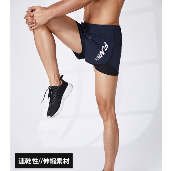 RUN ランニングパンツ メンズ インナー付き 短パン クイックドライ ショートパンツ ストレッチ スポーツ ランパン