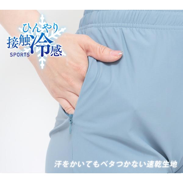 ひんやり接触冷感。軽量で速乾性のあるスポーツパンツ