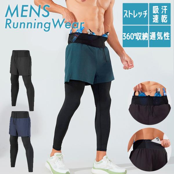 ランニングパンツ ハーフタイツ ウエストポケット付き レギンス ショートパンツ 防水ポケット スパッツ メンズ スポーツ 超軽量 クイ