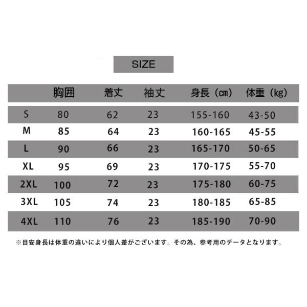 Sサイズ44センチ、Mサイズ 48センチ、L サイズ49センチ、XLサイズ51センチ、2XLサイズ53センチ、3XLサイズ56センチ
