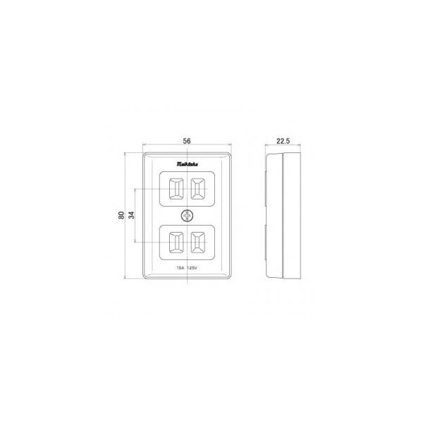 ●定格電圧(V):125●定格電流(A):15●全高(mm):8●全幅(mm):56●口数:2口●全厚み(mm):22.5●質量(g):9