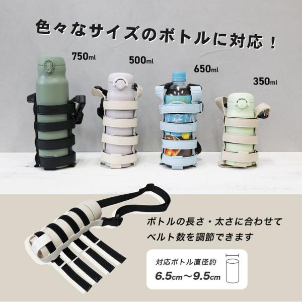 サイズ調整可能(ペットボトルや各メーカー水筒・ミニボトルにも対応)