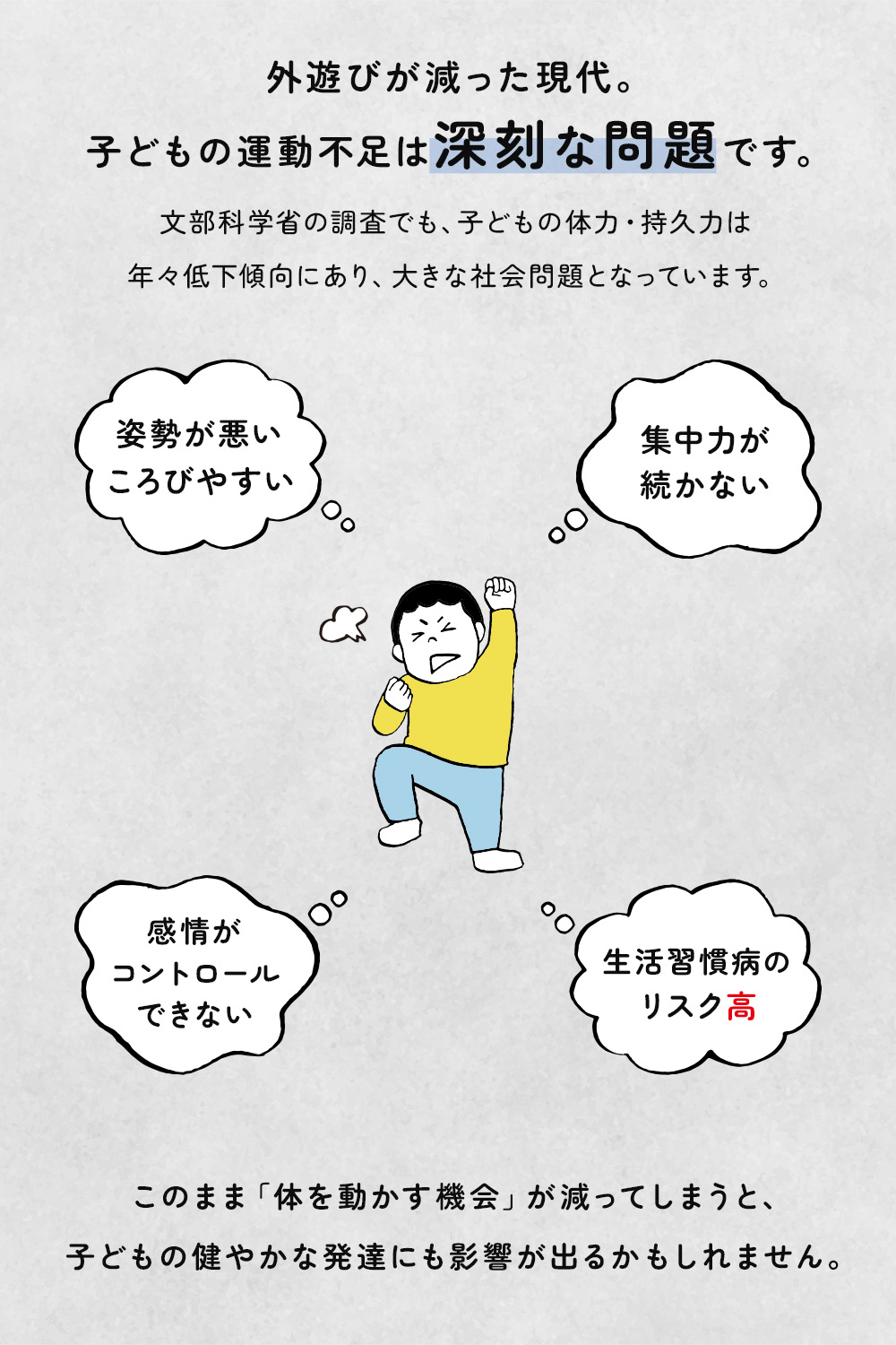 外遊びが減った今、子どもの運動不足は深刻な問題に。