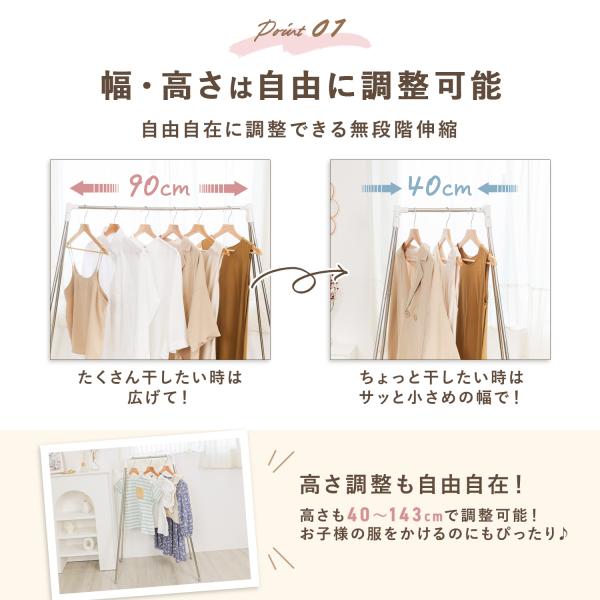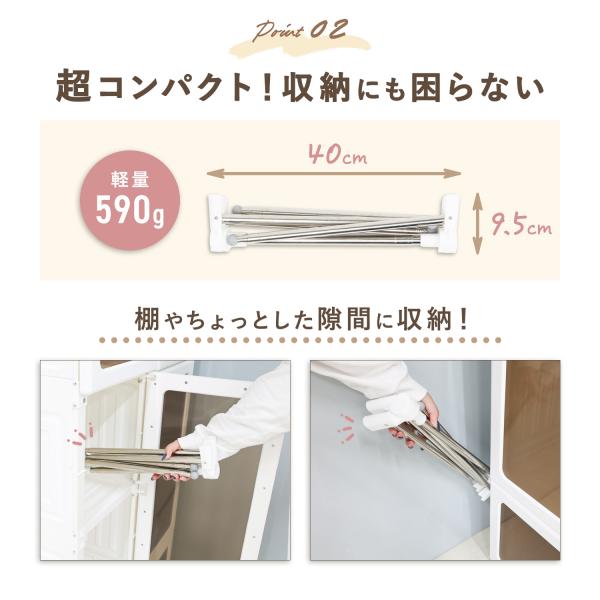 自由自在に調整できる無段階伸縮で、干したい物や場所に合わせてサイズが変えられます!