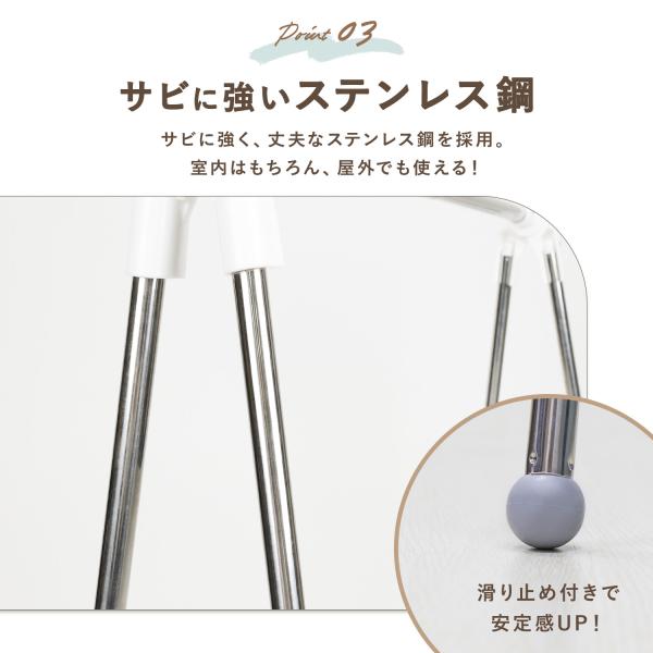 サビに強く、丈夫なステンレス鋼を採用。室内はもちろん、屋外でも安心して使えます!