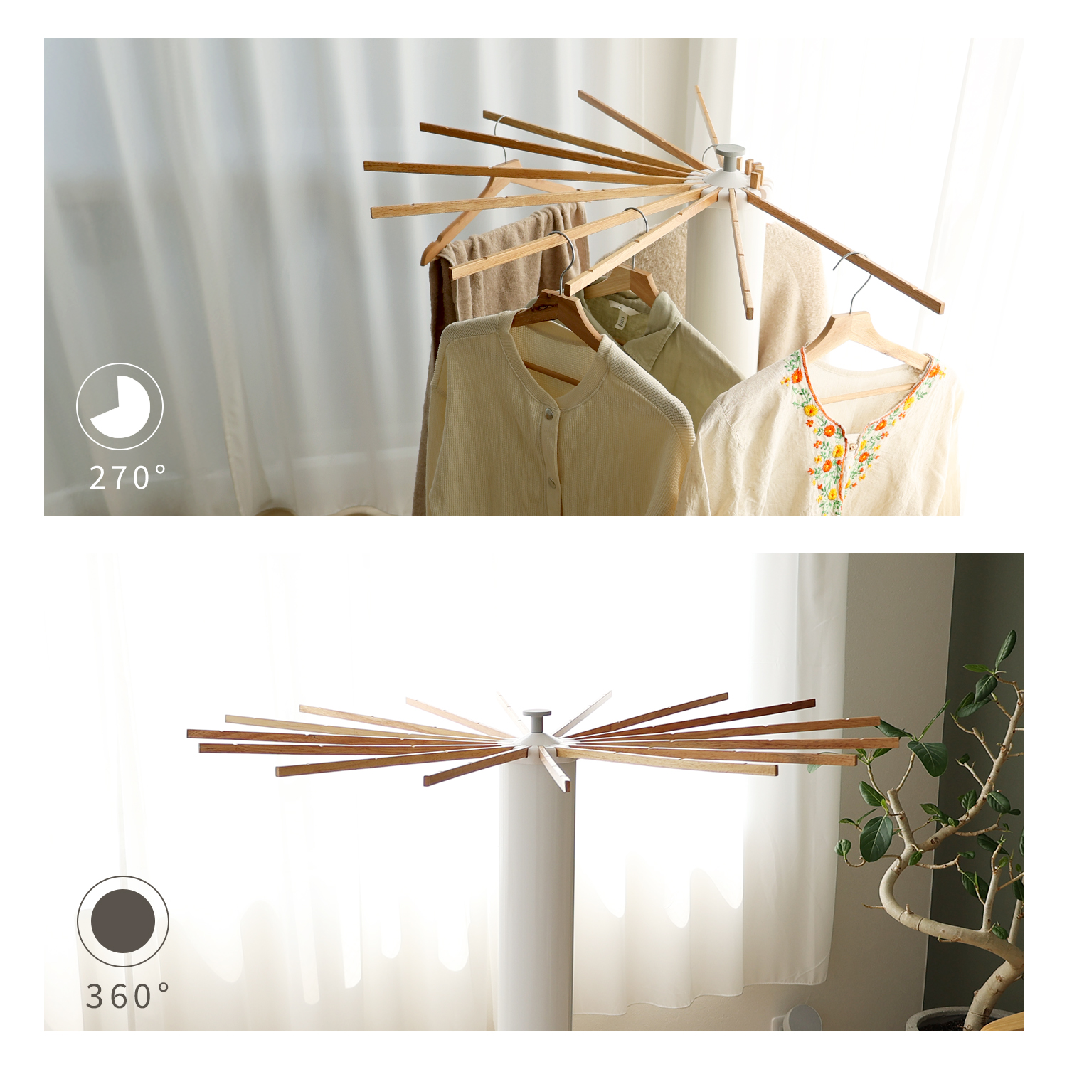 物干し竿同士の間隔は22度。十分な広さがあるので、