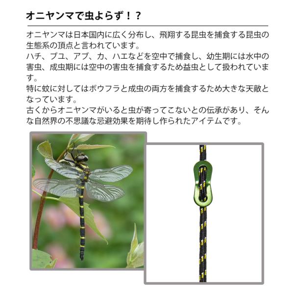古くからオニヤンマがいると虫が寄ってこないとの伝承があり、そんな自然界の不思議な忌避効果を期待し作られた虫除けアイテムです。