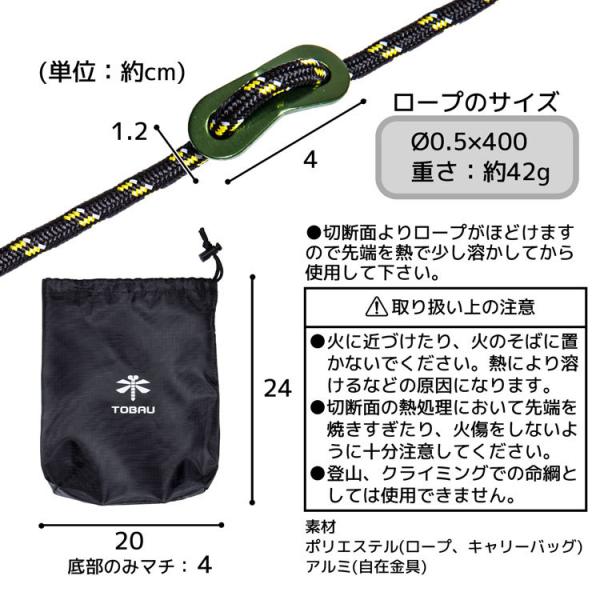 TOBAU オニヤンマロープ セット テントロープ タープロープ 5mm×4m 6本 反射材入り 自在金具 ガイロープ パラコード キャンプ アウトドア