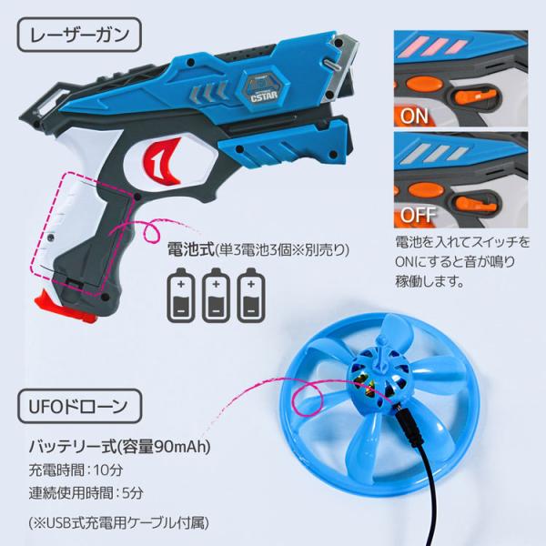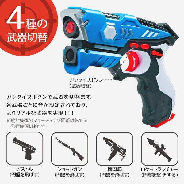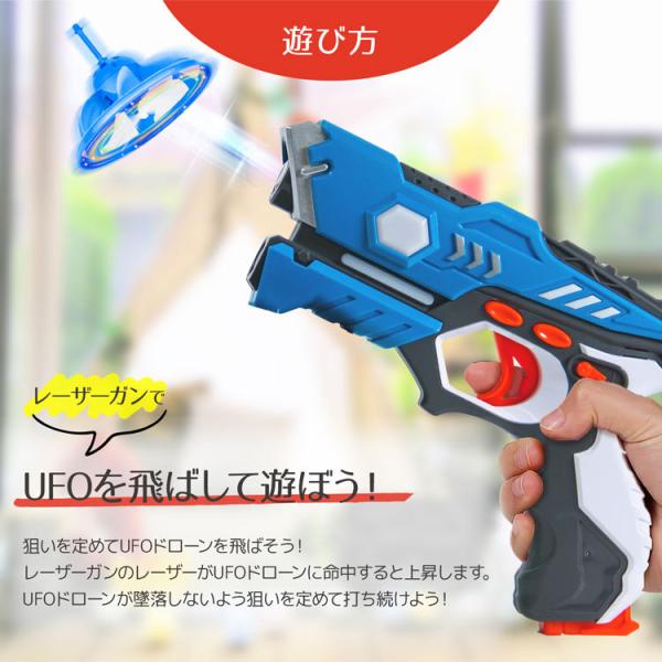 レーザーガン 対戦セット 2個入り UFO ドローン 赤外線 銃 おもちゃ ガン 鉄砲 電池 式 USB 充電 UFOドローン 電池式 USB充電 対戦型 子供 クリスマス