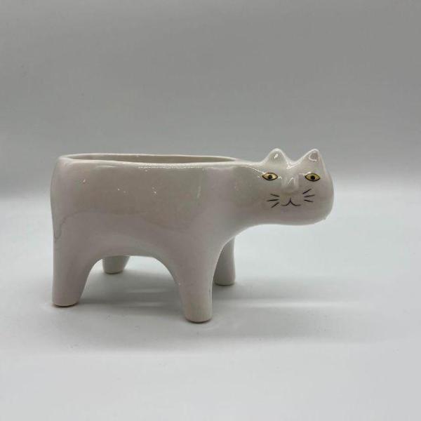 気持ち悪い顔のネコ 白猫 陶器 観葉植物 プランター 多肉植物 植木鉢 花瓶