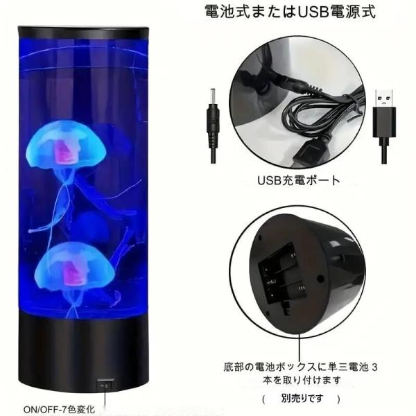 ナイトライト クラゲ ジェリーフィッシュ おしゃれ かわいい インテリア テーブル ライト コンパクト USB給電 電池式 間接照明 4-7