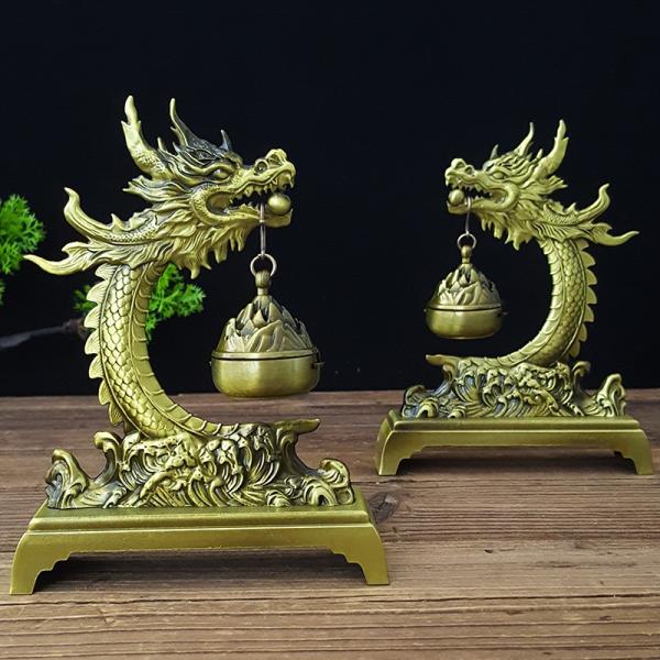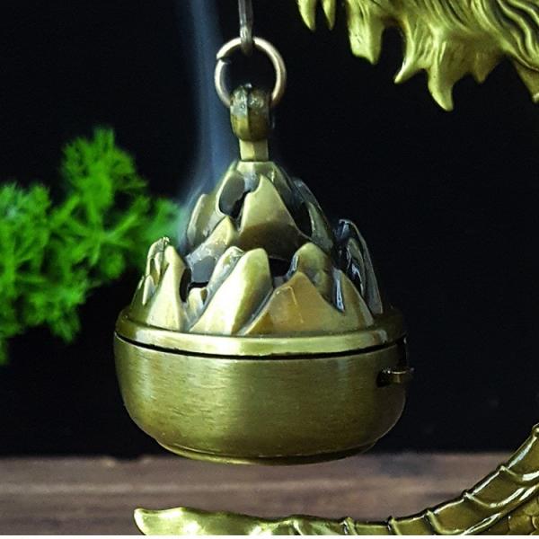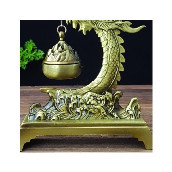 龍は、古代から力強さと繁栄の象徴として崇められ、多くの文化で幸運をもたらす存在とされています。この吊り下げタイプの香炉は、そんな龍をモチーフにしたデザインが特徴で、細部まで緻密に施された装飾が高級感を引き立てます。