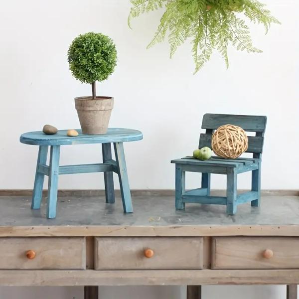 ガーデンオブジェ ベンチ 木製 ブルー ミニチュア 小さい 青 オーナメント 木 椅子 デコレーション ガーデニング 雑貨 ガーデン雑貨 ガーデンインテリア