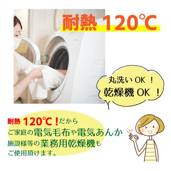 耐熱120℃まで対応した防水フィルムを使用。施設乾燥機や電気毛布をご使用頂けます。