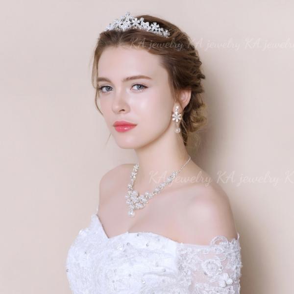 パール ティアラ ネックレス イヤリング ピアス 3点セット 結婚式 ウエディング 髪飾り ヘッドアクセサリー ウェディング ブライダル 花嫁