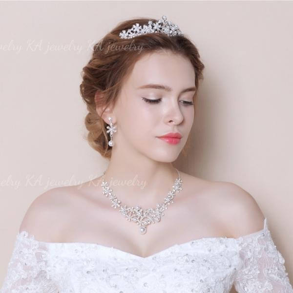 ティアラ ネックレス イヤリング ピアス 3点セット 結婚式 ウエディング 髪飾り ヘッドアクセサリー ブライダル ウェディング 花嫁