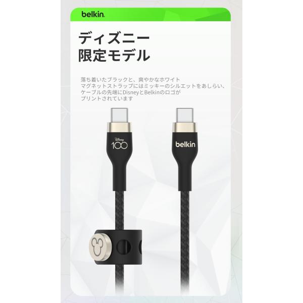 Belkin USB-C 編組シリコン 2m ケーブル iPhone 15 MacBook iPad Galaxy Android スマートフォン対応 急速充電 超高耐久 ディズニー 限定モデル 創立100周年