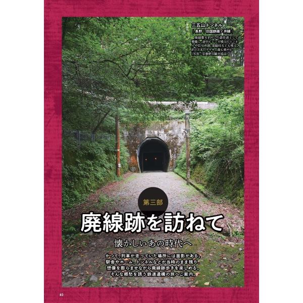 巻頭は鉄道写真家・中井精也さんのとっておきの一枚を集めました。そのほか鉄道ライターなど達人の鉄道物語や廃線跡を訪ねる旅など、バラエティー豊かな鉄道旅を紹介。