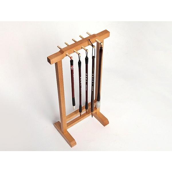 筆掛け 天然木 10本用 ケヤキ製 筆スタンド 書道用具