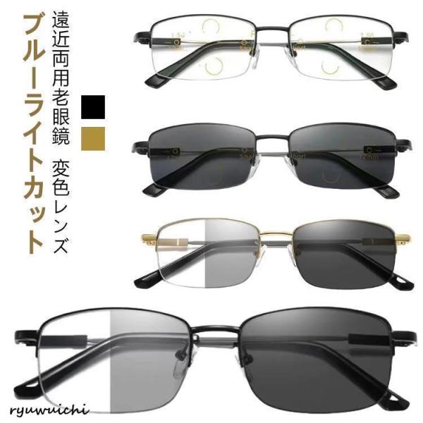 老眼鏡 軽量 ブルーライトカット シニアグラス 累進多焦点 メンズ チタン合金 レディース 遠近両用メガネ リーディンググラス 紫外線でレンズの色が変