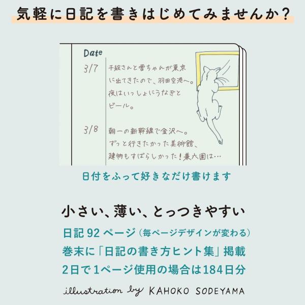 グリーティングライフ そで山かほ子 スロージャーナル イラストが毎ページ変わる 日記帳 SDD-43 キャット ブルーグレー /【メール便OK】