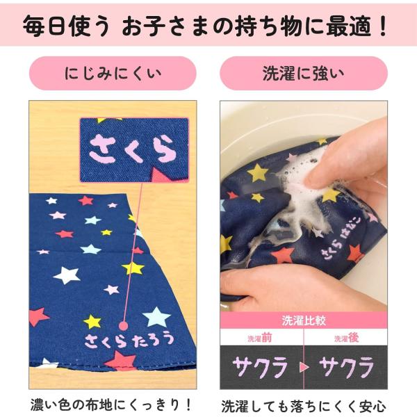 白、濃い色の布にくっきり書け、名前がしっかり見える。